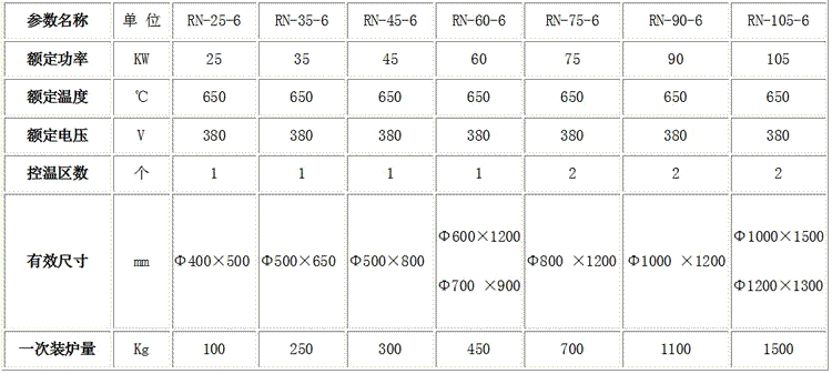 RN系列氮化爐規(guī)格表