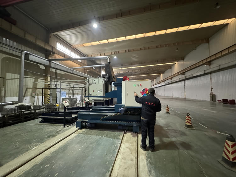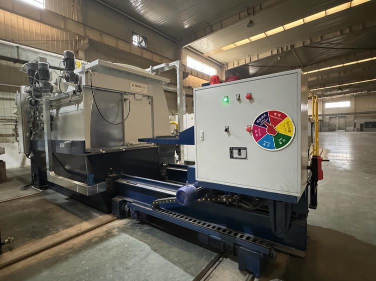 4、回火裝爐:瀝水完成后——料筐轉(zhuǎn)移到回火爐爐口——爐門開啟——中轉(zhuǎn)車把工件送入回火爐膛——中轉(zhuǎn)車自動退出——爐門關(guān)閉——裝爐工作完成。