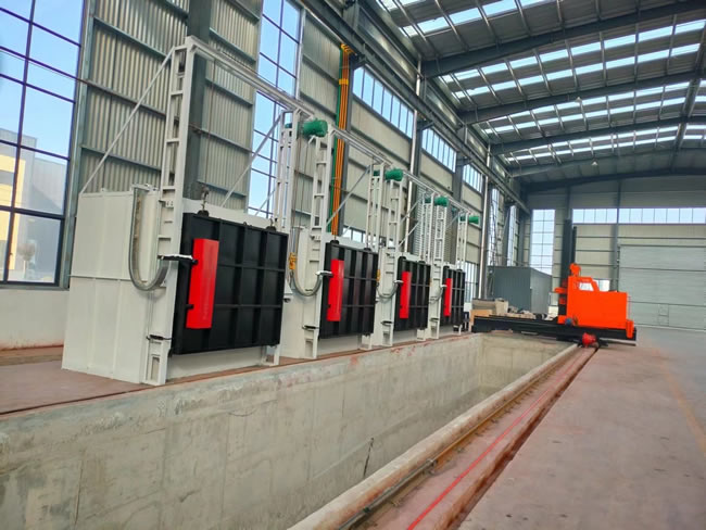 快速淬火機組生產(chǎn)線,一個機組可以根據(jù)用戶的產(chǎn)量和工藝要求配套幾臺不同的爐型,爐子的數(shù)量和爐型可以自由組合,本生產(chǎn)線可滿足不同的生產(chǎn)工藝,如:淬火、回火、退火、調(diào)質(zhì)等熱處理工藝,爐溫有1200℃,950℃,700℃等,每條生產(chǎn)線配有一臺快速下水淬火操作車,該操作車可上下、左右、前后六個方向移動。工件加熱爐內(nèi)加熱完成后,操作車迅速進入爐內(nèi)將工件從爐膛內(nèi)叉出,并快速落入水池或淬火液池內(nèi),整個過程在1分鐘內(nèi)完成,生產(chǎn)效率高,操作方便,從而保證了工件的淬火質(zhì)量。