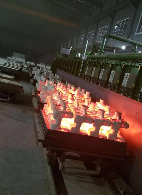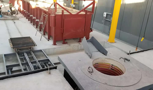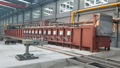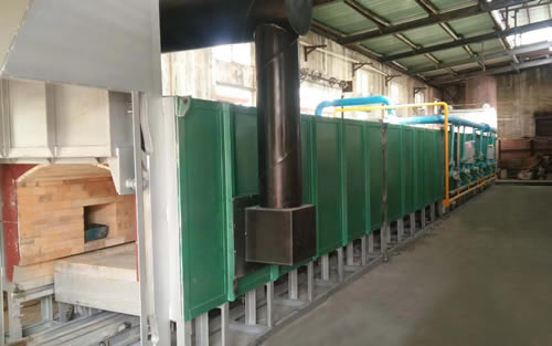 ④ 排煙系統(tǒng):煙道設(shè)在預(yù)熱段,均熱段和加熱段產(chǎn)生的高溫?zé)煔饨?jīng)過(guò)預(yù)熱段排出,充分利用煙氣余熱對(duì)模殼預(yù)熱。煙氣通過(guò)排煙管道排出廠房之外。本爐設(shè)有一支大口徑上排式鋼質(zhì)煙囪(甲方自備煙